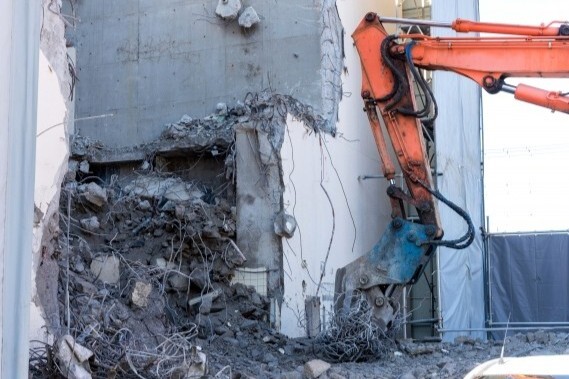 ミンチ解体とは、建物を解体する際に木材やコンクリート、金属、ガラス、断熱材などを分別せず、重機で一気に取り壊してしまう解体方法のことを指しています。建物を文字どおりミンチ状に粉砕して壊すことから、この名称で呼ばれるようになりました。かつては、足場や手作業による分別工程を省略できるため、工期が短く人件費をおさえられる解体方法として広く行われていました。しかし現在は、法律により原則として禁止されています。